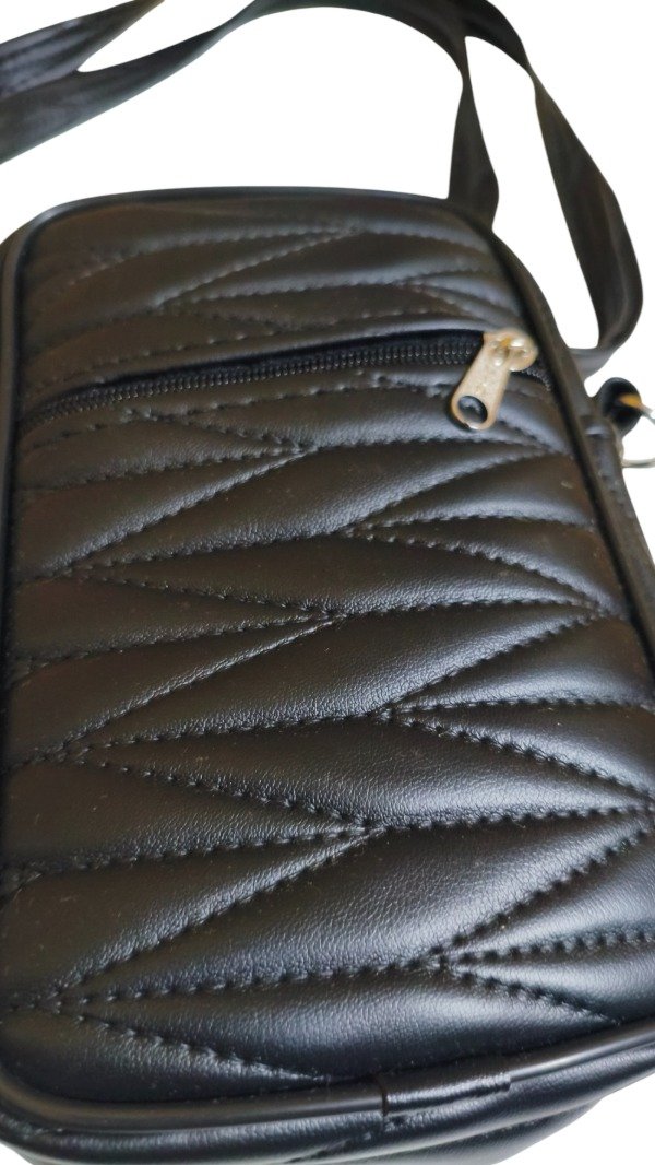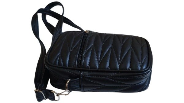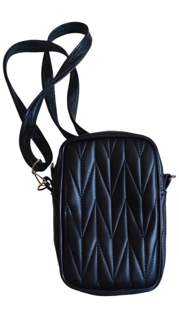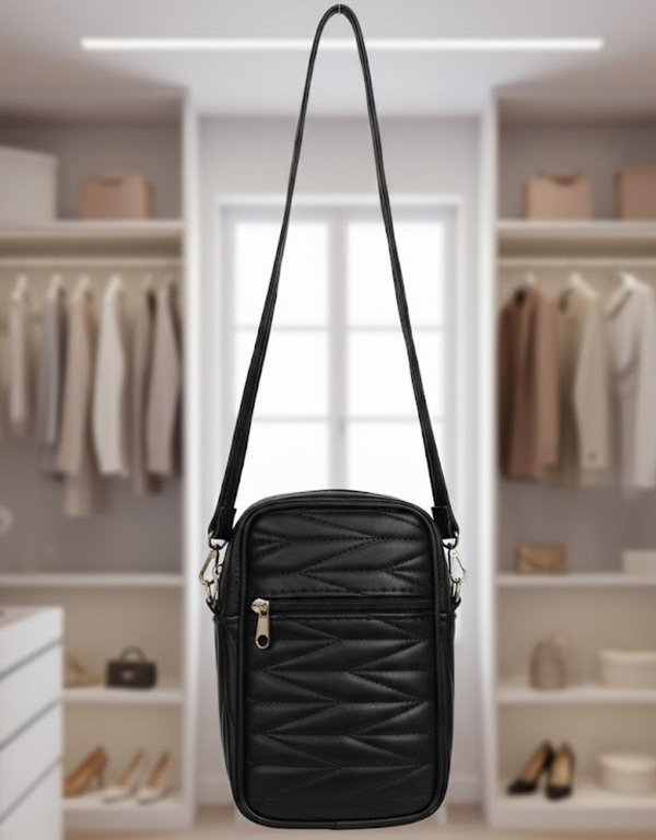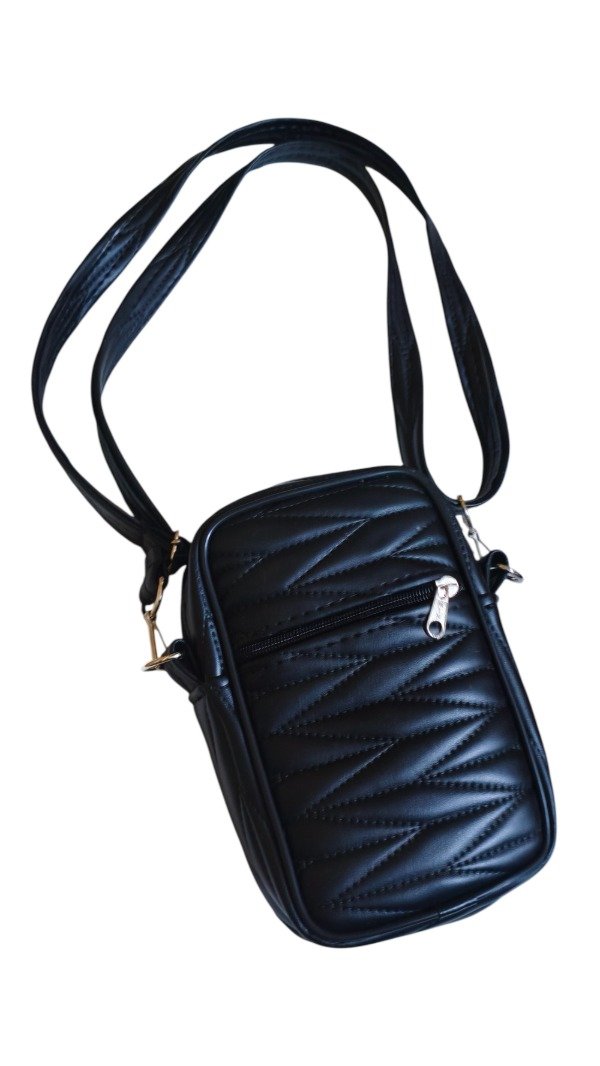 Su color negro en las asas aporta un toque elegante, mientras que su material interno de tela garantiza un acabado suave y cómodo. Diseñada para un uso versátil, esta bandolera es perfecta para llevar lo esencial: celular, billetera y llaves, todo en un solo lugar.