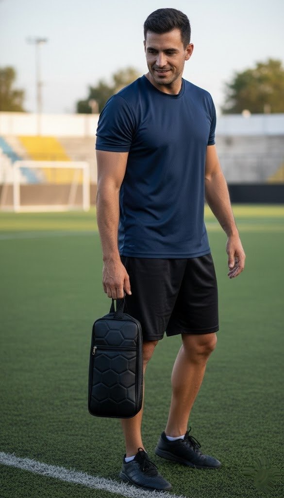 Este botinero combina un diseño moderno con materiales resistentes, ideal para fútbol, entrenamiento o viajes. Diseño Premium: Estética inspirada en los gajos de una pelota de fútbol.