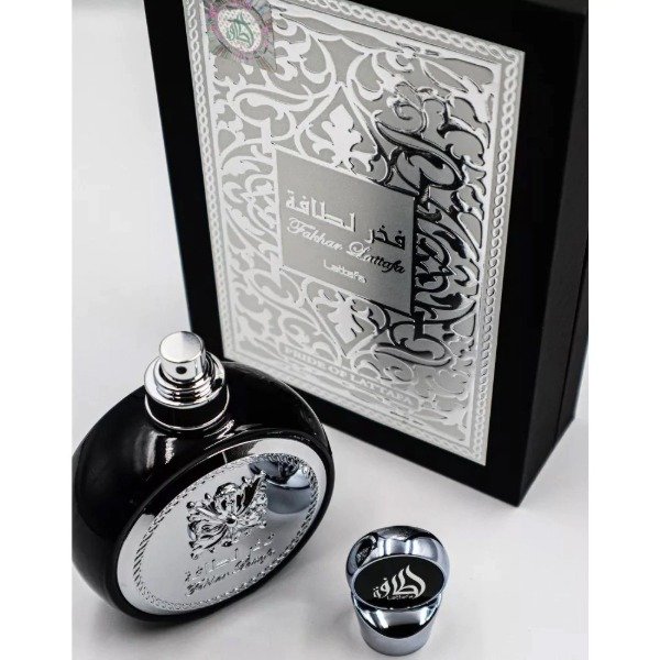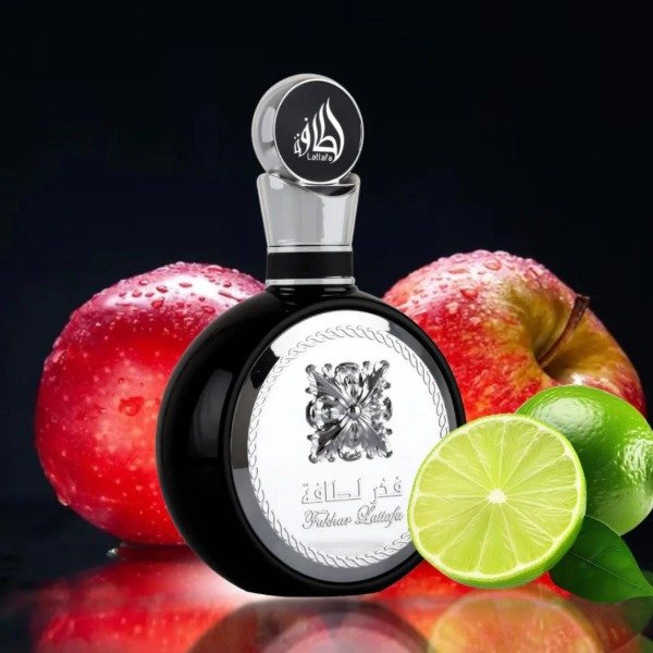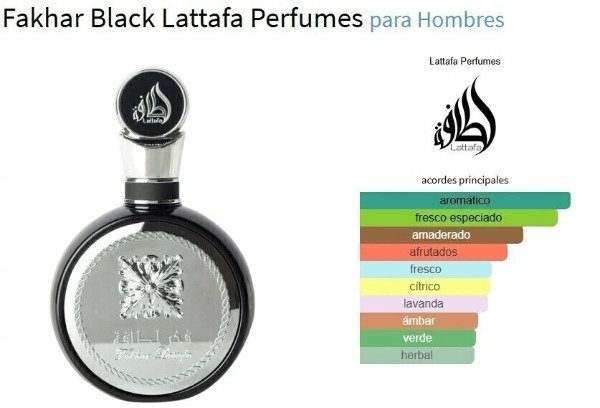 El perfume Fakhar Black de Lattafa Perfumes es una fragancia de la familia olfativa Ámbar para Hombres. Fakhar Black se lanzó en 2021. Las Notas de Salida son manzana, bergamota y jengibre; las Notas de Corazón son lavanda, salvia, bayas de enebro y geranio; las Notas de Fondo son haba tonka, Amberwood, cedro y vetiver.