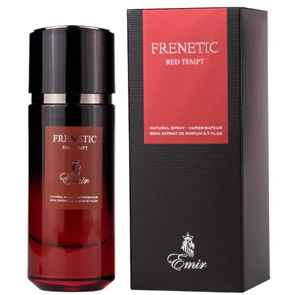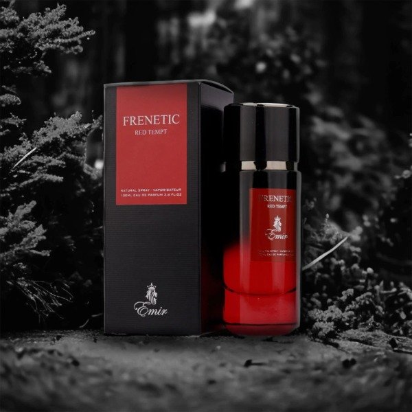 Emir Frenetic Red Temptation de Paris Corner es una fragancia de la familia olfativa aromática fougere para hombres. Notas de salida: Flor de Nuez moscada, Lavanda, Cedro, Naranja Mandarín, Manzanilla, Espino, Bergamota y Limón; Notas de corazón: Hoja Violeta, Nuez moscada, Cedro, Sándalo, Madreselva, Clavel, Jazmín y Lirio del Valle; Notas de fondo: Cuero, Vetiver, Musk, Amber, Patchouli y Tonka Bean.